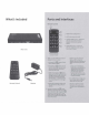 What's included Ports and Interfaces Remot e Control 1. POWER: Power standby/power on 2. MUTE: Audio output mute on/off 3. Full Screen MODE 2; Press 1 ~4 button will select the corresponding channel and displayed in full screen as a seamless switcher. 4. AUDIO SWITCH: press 1 ~4 button will select the corresponding audio output.(In 2x2, 1x3 and P1P Modesl Main Unit Remote Control Size: 2 x 4.8 x .37 inches S. MODE 1. The four HDMI input sources are displayed ,n 2x2 on one screen. EB) a.