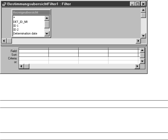 In the lines Criteria and or and in all following lines, data sets can be fil-