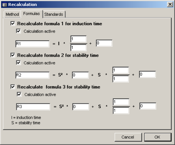 If this option is activated, the parameters for formula 1 can be re-