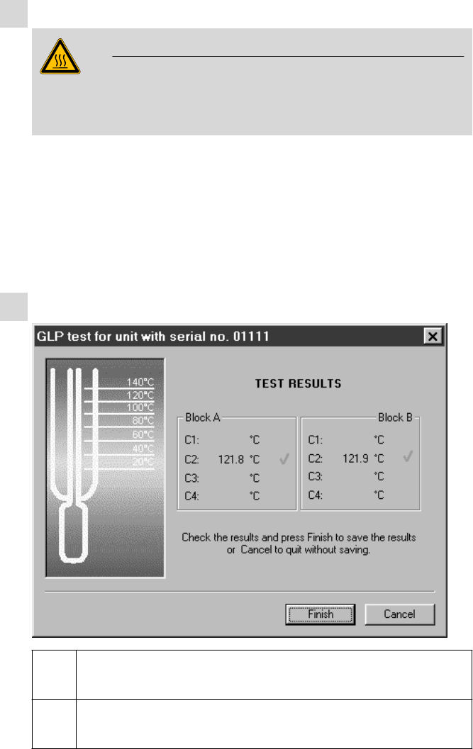 The aluminum cylinder of the GLP test set is very hot. Do not