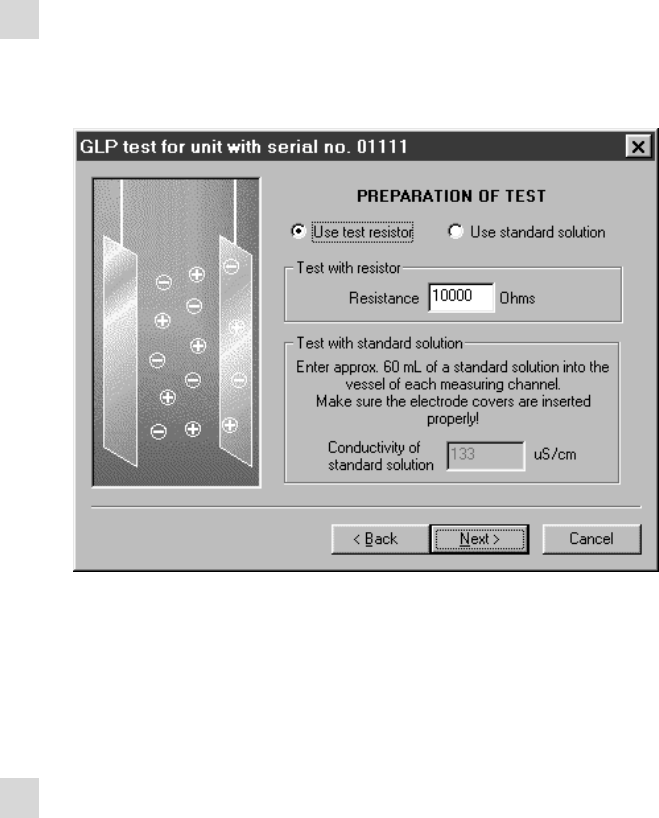 ■ Click on the menu item Tools ▶ GLP test ▶ Conductivity... and