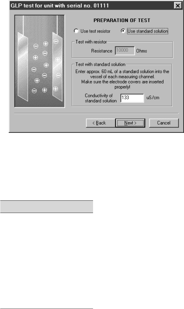 ■ Click on the menu item Tools ▶ GLP test ▶ Conductivity... and