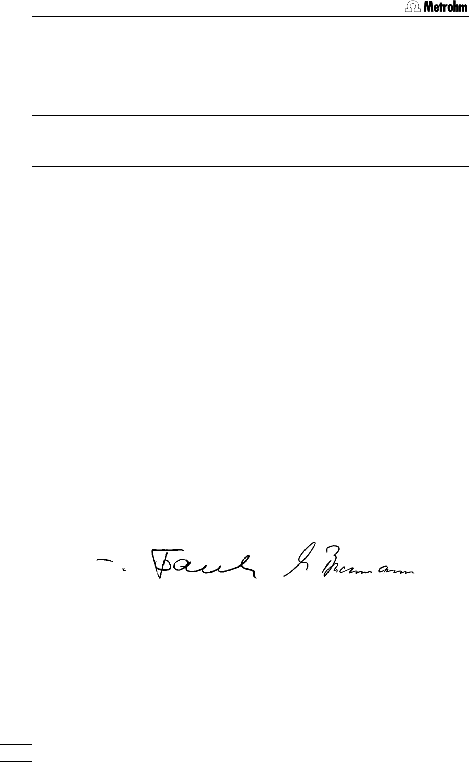 Name of manufacturer: Metrohm Ltd., Herisau, Switzerland