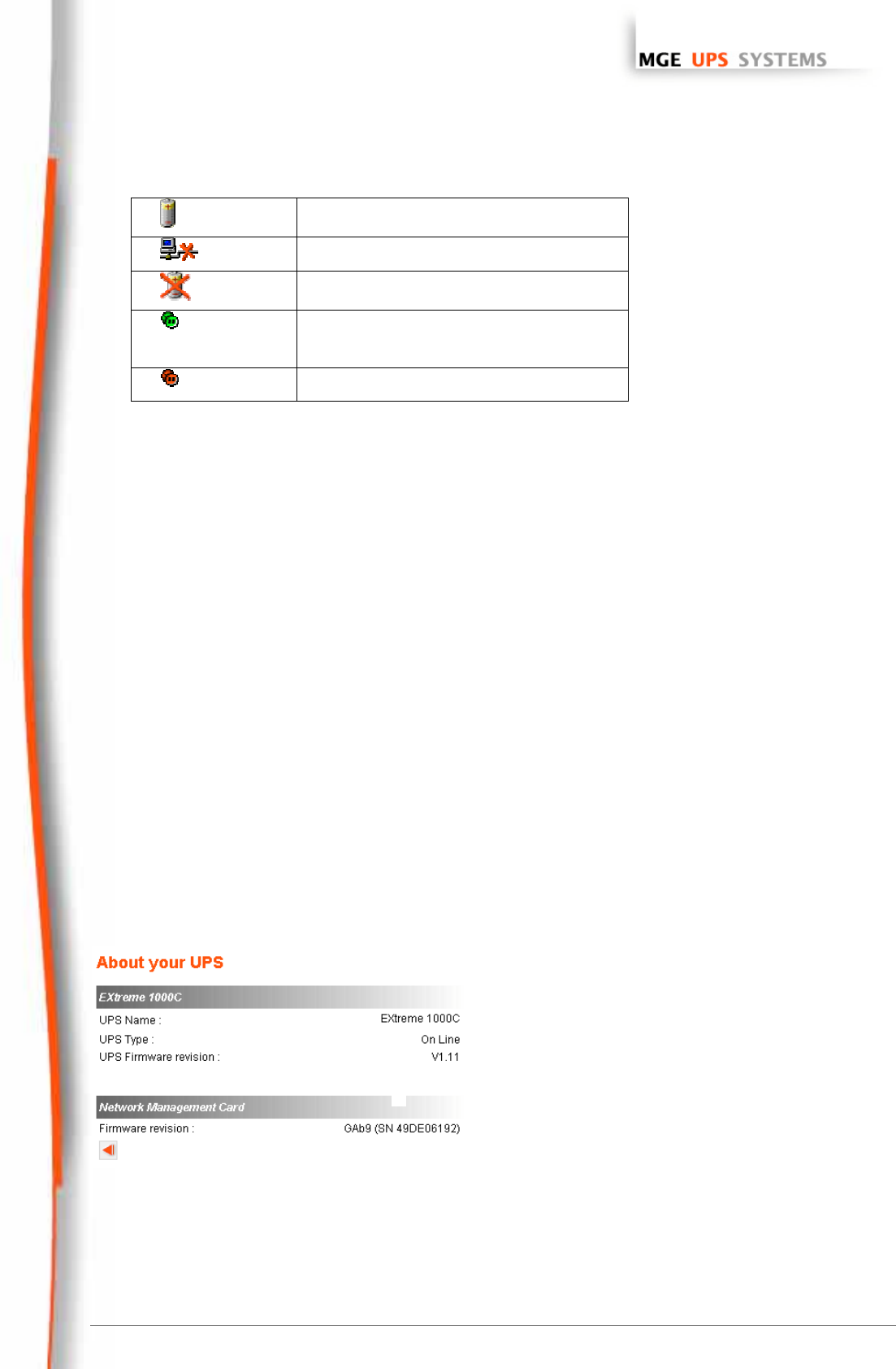 The “About your UPS” zone provides information on the UPS and the Network Shutdown Card, in particular,