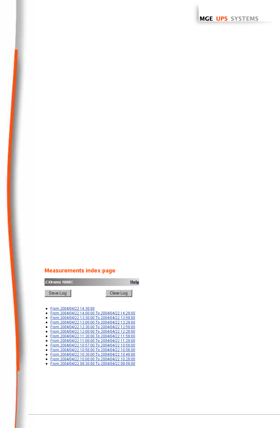The following measurements are saved and time-stamped:
