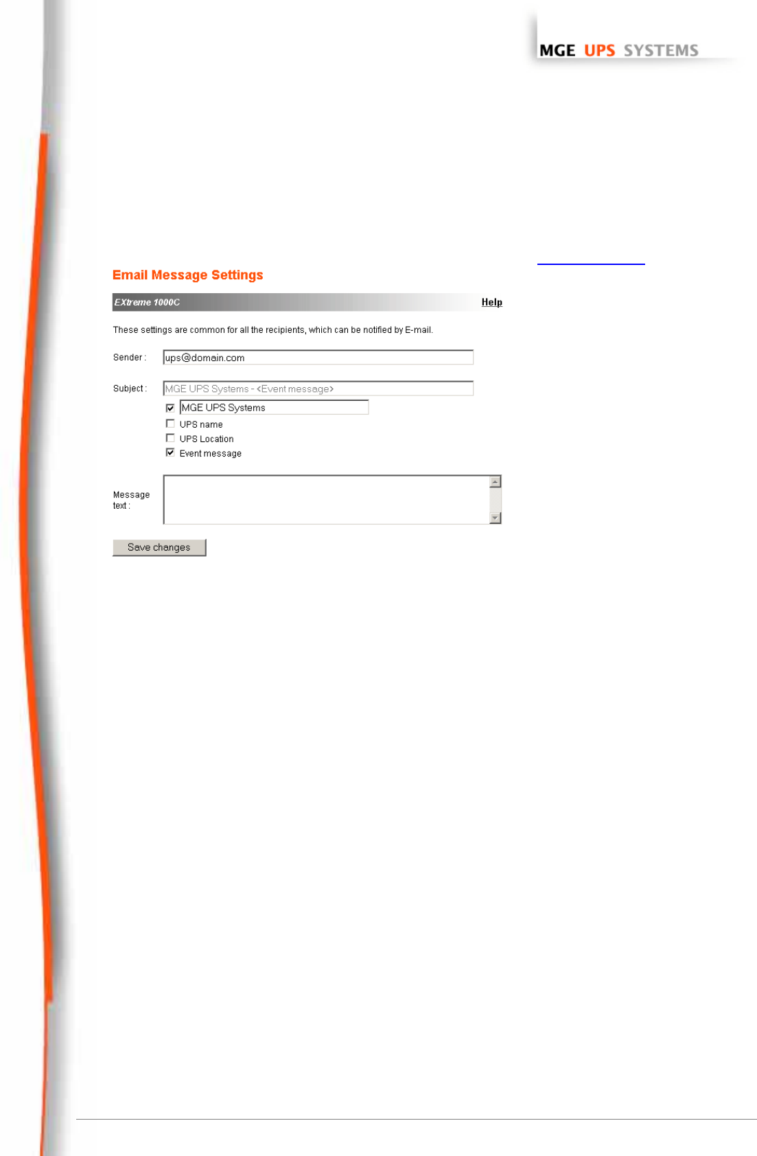 – Event message identifies the event generating the e-mail, can be selected or not.