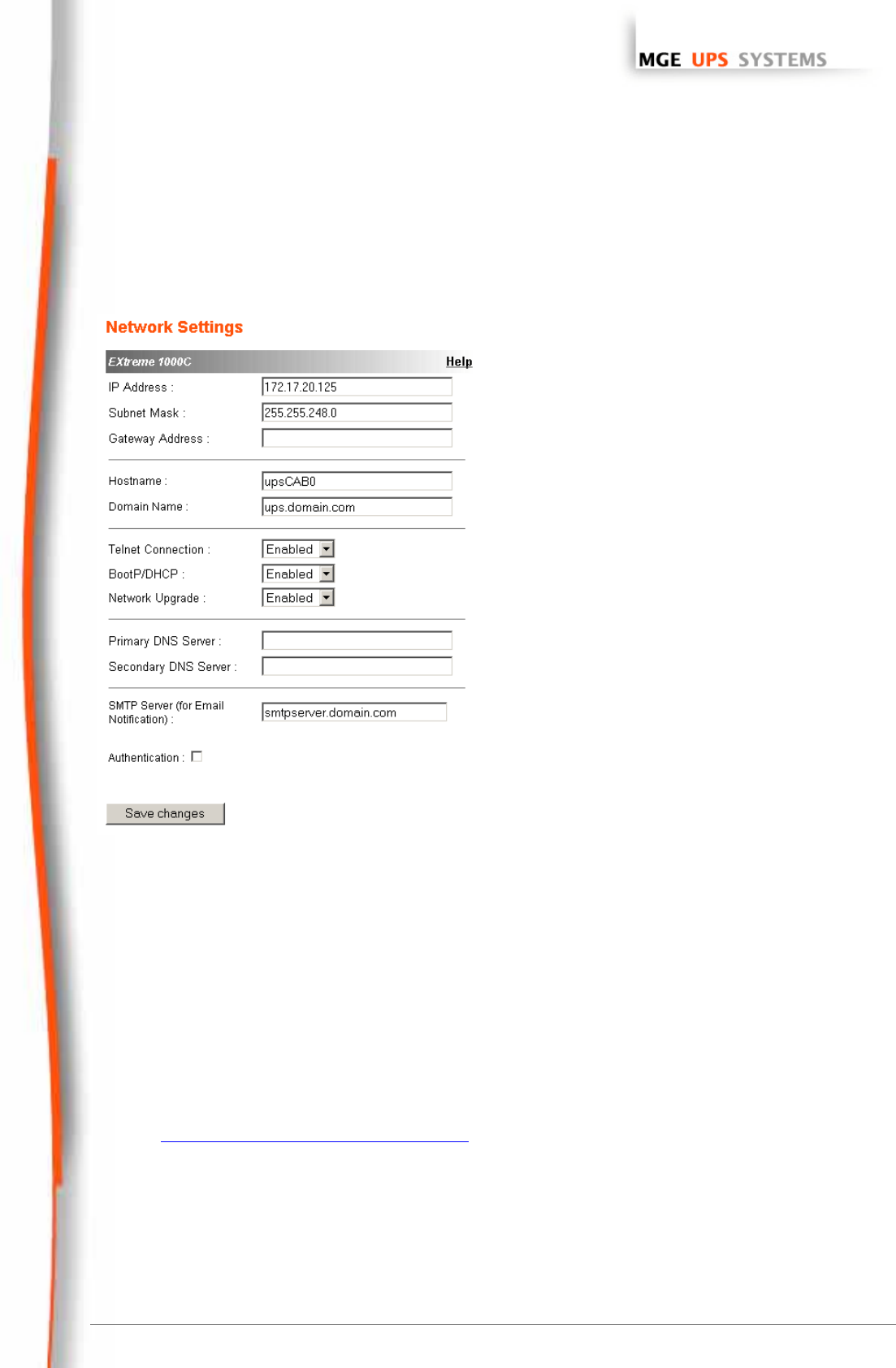 This menu enables the administrator to configure the network parameters of the card and authorisation of the