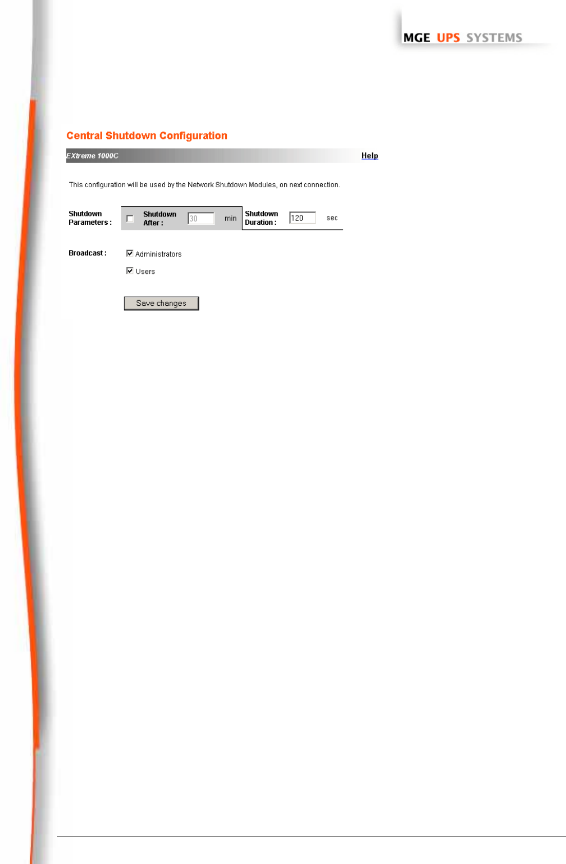 Z Change the Network Shutdown Module parameters in the page “Central Shutdown Configuration”.