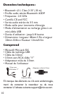 Données techniques : • • • • • • • Bluetooth v2.1, Class 2: 33’ (10 m) Profile audio stéréo Bluetooth: A2DP Fréquence : 2.4 GHz Certifié CE and FCC Sortie audio stéréo de 3.5 mm Mode veille pour économie d’énergie Mode d’alimentation: se recharge grâce à un mini-câble USB • Durée d’utilisation : jusqu’à 8 heures • Dimensions : longueur 48mm/1.9in x largeur 20mm /0.8in x Hauteur 12mm/0.5in Comprend • • • • • • Miccus® Mini-jack RX Câble de recharge USB Câble de 3.5mm 3.