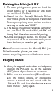 3. The blue LED on the Mini-jack RX will flash slowly, indicating a connection. 4. Press “play” and the music will be sent wirelessly to the Miccus® Mini-jack RX. Note: If you cannot hear the music, Make sure your stereo system is set to AUX input or whichever input is the corresponding input to the Mini-jack RX. a. Check and make sure the volume is not turned down or muted.