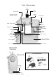 Parts & Accessories Thread Spindle(C) Thread Spool(E) Takeup Lever(D) Bobbin Holder(V) MAIN UNIT Bobbin winder Spool(T) Hand Wheel(K) Needle Clamp Screw(O) Bobbin Spindle(U) Adjusting Screw(Q) On/Off switch(A) Needle Clamp(P) Speed Button(L) Needle(R) Bobbin Compartment(I) Tension Screw(N) Bobbin(S) Battery Compartment(B) (on underside of machine) Thread Gap(H) Presser Foot(F) Bobbin Holder(J) MAIN UNIT (back view) ACCESSORIES Presser Foot Lever(G) Foot Pedal Four Metal Bobbins Needle