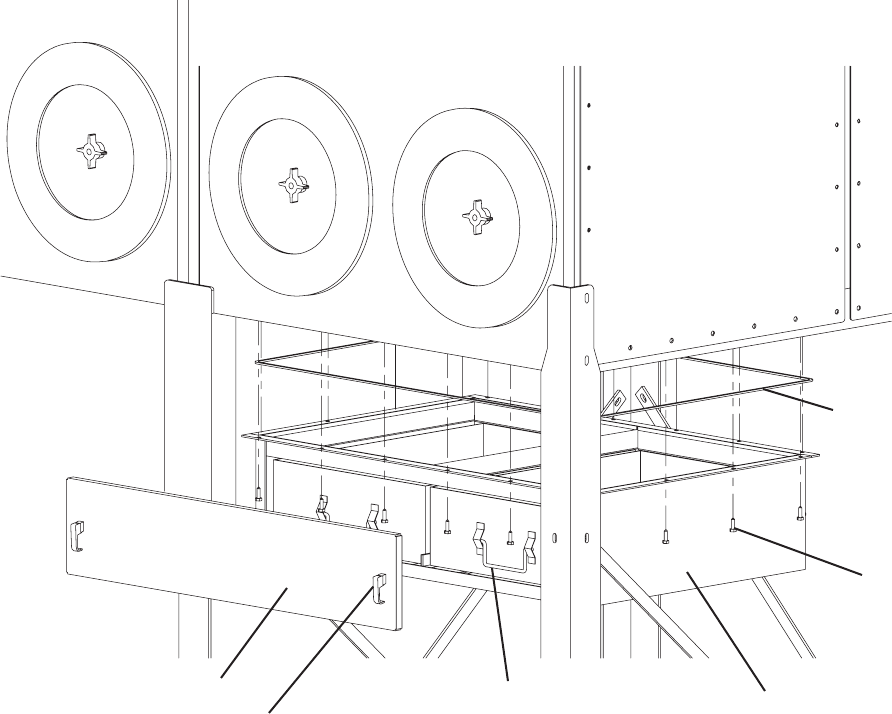 3. Attach the dust tray (38379-01), usting twenty (20) self-tapping screws, to the unit.