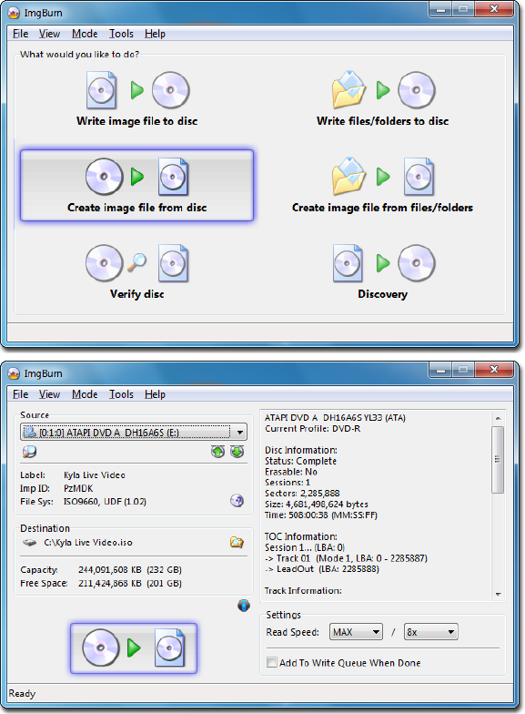 a. To create an ISO disc image in