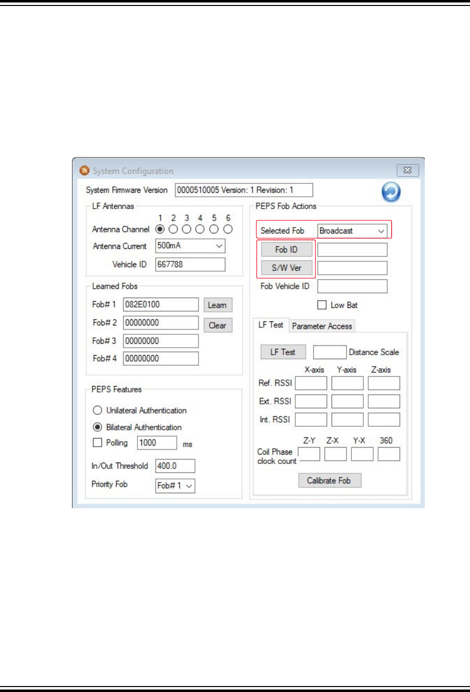 2. In the System Configuration window, choose Broadcast from the Selected Fob drop-down list.