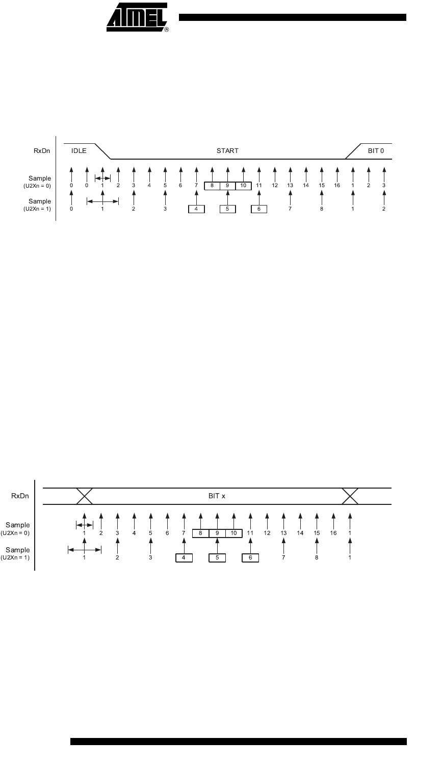 figure), to decide if a valid start bit is received. If two or more of these three samples have logical