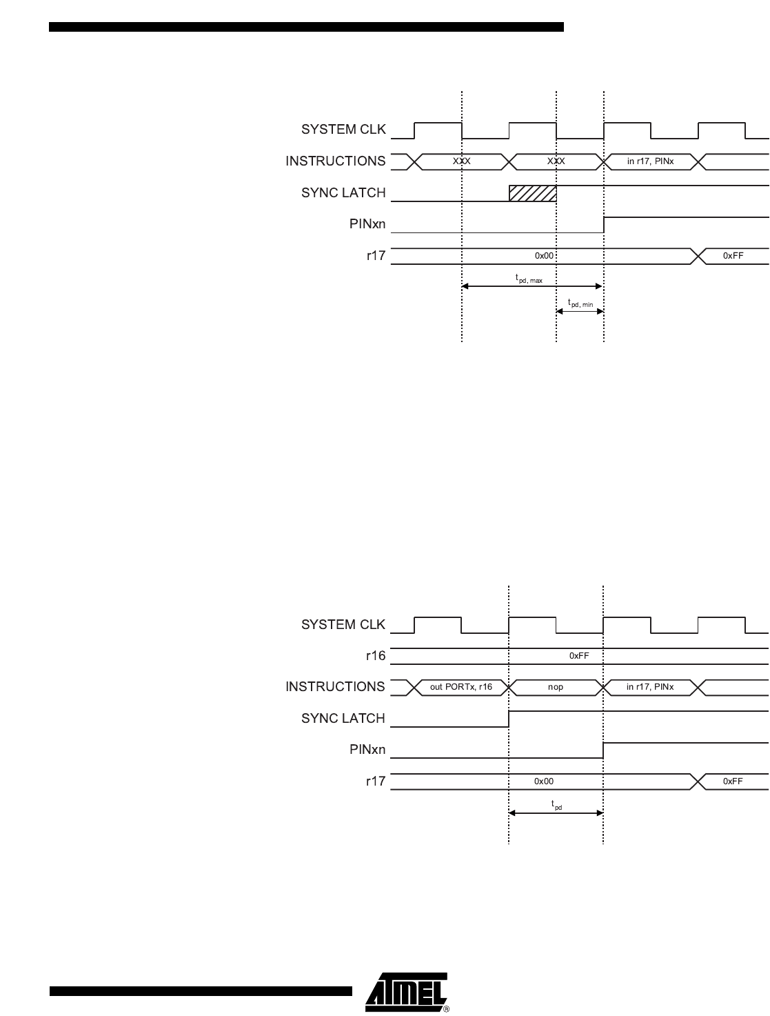 goes low. It is clocked into the PINxn Register at the succeeding positive clock edge. As indi-