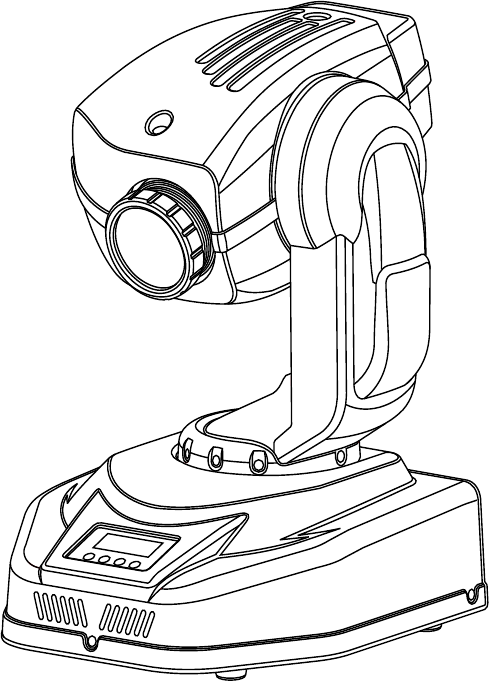 2.Operating determinations This device is a moving-head spot for creating decorative effects and was designed for indoor use only. This device is designed for professional use, e.g. on stages, in discotheques, theatres etc. Lighting effects are not designed for permanent operation. Consistent operation breaks will ensure that the device will serve you for a long time without defects. Never run the device without lamp! Do not shake the device. Avoid brute force when installing or operating the device.