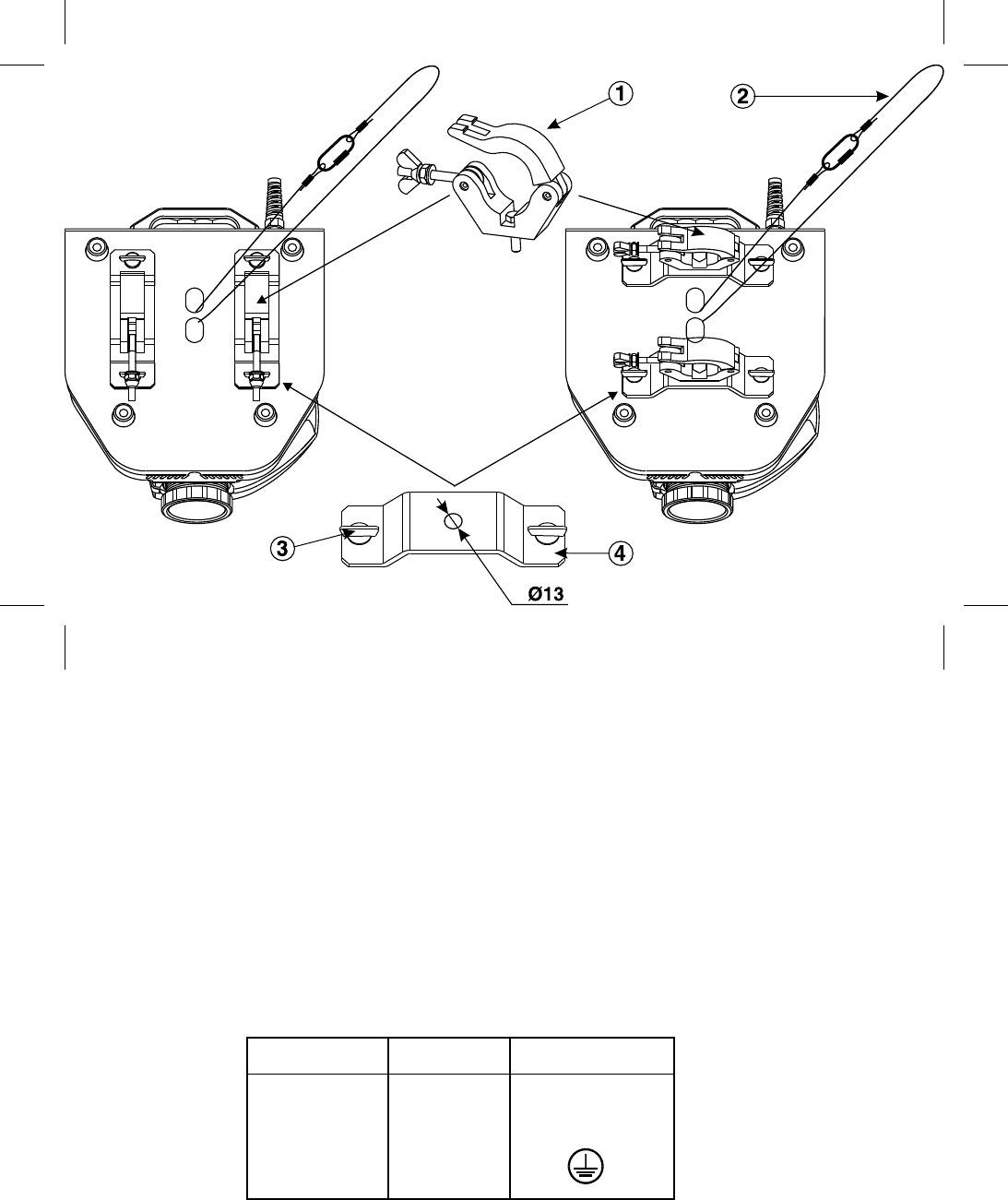 1. Screw each clamp (1) to the included Omega holders (4) with M12 bolt and nut through the hole in the holder.