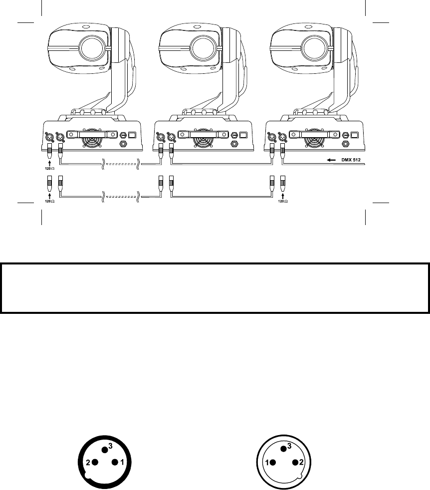 Caution:It’s necessary to insert the XLR termination plug (with 120 Ohm) into the input of the master fixture and
