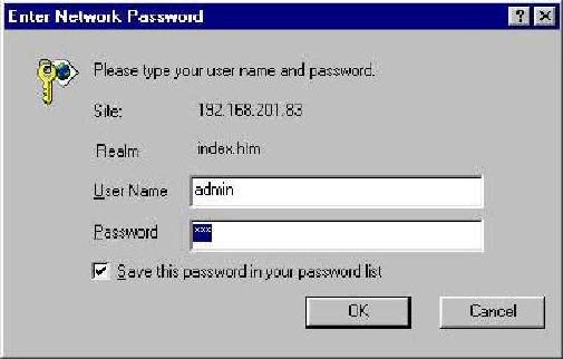 Enter the default IP address of the switch into the web browser for the login