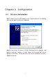 Chapter 3 Configuration 3.1 Drivers Installation Step 1. Gently insert the USB adapter into an available USB slot. The following message will appear, please press . Step 2. Insert driver CD into the CD/DVD ROM drive of the computer, and execute ‘Setup.exe’ program in ‘Utility’ folder. Read through the License Agreement and select ‘I accept the terms of the license agreement’ then press to proceed.