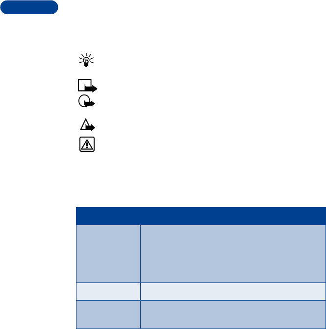 Warning: Helps you avoid personal injury, damage to the phone,