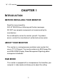 18” LCD monitor CHAPTER 1 INTRODUCTION BEFORE INSTALLING YOUR MONITOR Read this manual carefully. PAY ATTENTION to all Warning and Caution messages. DO NOT use computer components not recommend by the manufacturer. Do not attempt to service the monitor yourself. If a problem occurs, contact the manufacturer's authorized service center. ABOUT YOUR MONITOR This monitor is a microprocessor-controlled, color monitor that uses a TFT LCD panel.