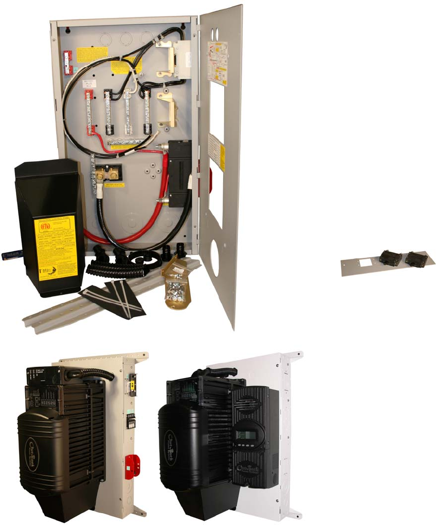The Stretched OutBack E-Panel shown here on the left has the OB surge arrestor installed on the top end of the inverter.