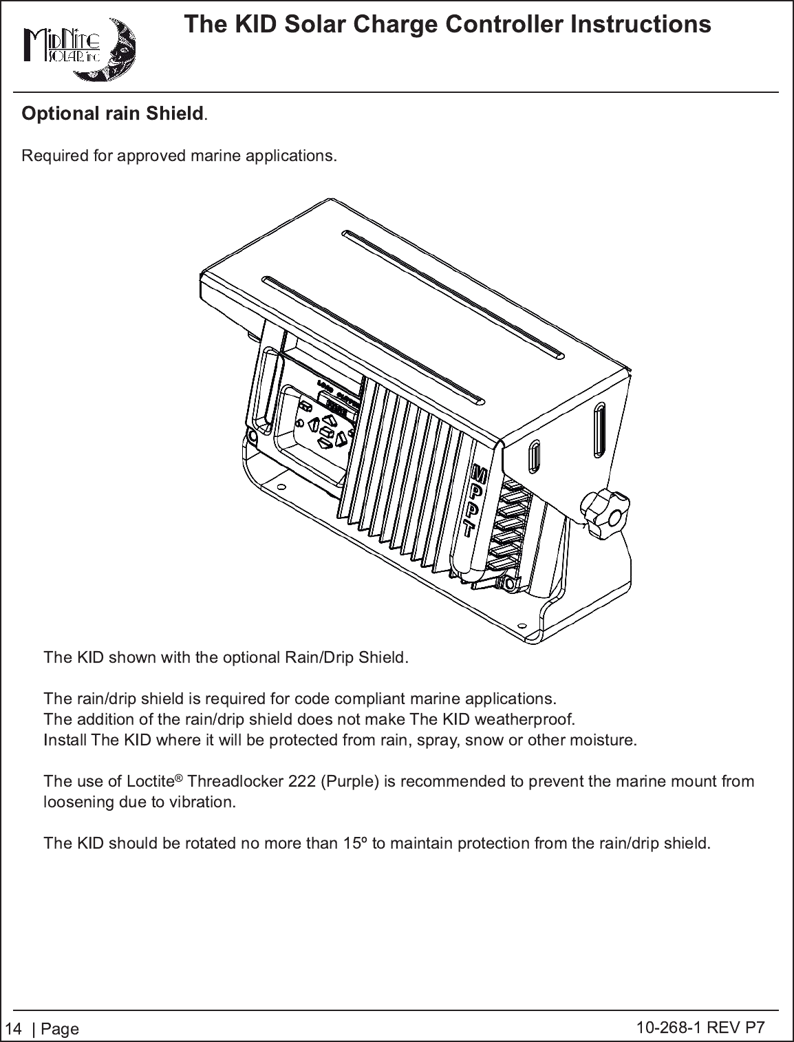 The KID should be rotated no more than 1 5º to maintain protection from the rain/drip shield.