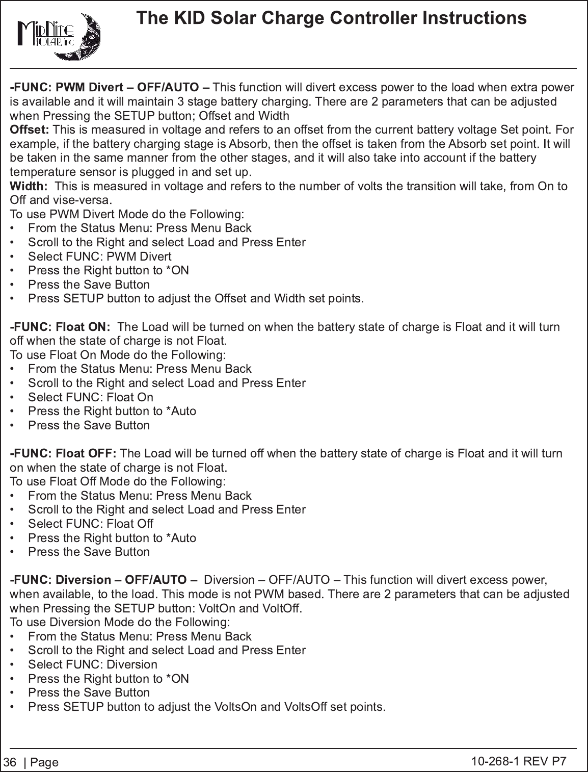 -FUNC: PWM Divert – OFF/AUTO –