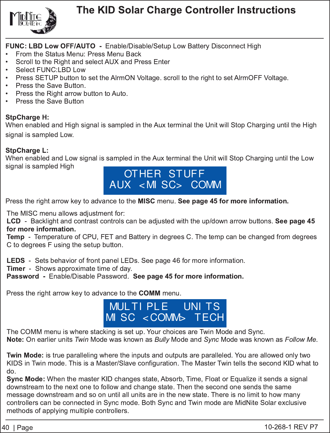 controllers can be connected in Sync mode. Both Sync and Twin mode are MidNite Solar exclusive