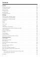 Contents Packaging material / Disposal of old machine . . . . . . . . . . . . . . . . . . . . . . . . . . 2 Warning and Safety instructions . . . . . . . . . . . . . . . . . . . . . . . . . . . . . . . . . . . . . 6 Guide to the machine . . . . . . . . . . . . . . . . . . . . . . . . . . . . . . . . . . . . . . . . . . . . . 13 Controls and display . . . . . . . . . . . . . . . . . . . . . . . . . . . . . . . . . . . . . . . . . . . . . . 14 Accessories . . . . . . . . . . . . . . . . . . . . . . . . . . .
