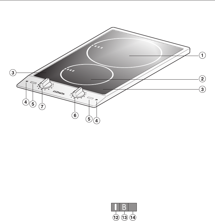 b Cooking zone with single booster (Bl)