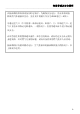 注意事项及安全说明 ______________________________________________________________________________________________________________________________________________ 身体、感官或精神障碍、或缺乏经验或知识的人士,使用抽油烟机时必须 有人看管,或者已经向其讲解如何安全使用,并使其充分了解到操作不当 可能造成的后果。 儿童安全注意事项 无人看管的情况下,八岁以下的儿童须远离本电器。 八岁以上儿童可以在无人看管的情况下使用本机器,但须向其详细说明如 何安全使用,并使其认识到使用不当可能造成的后果。 儿童不可在无人看管的情况下清洁或维护本抽油烟机。 儿童在抽油烟机附近时请注意看管,切勿允许儿童把玩抽油烟机。 烟机照明灯非常刺眼。 尤其确保婴儿/儿童不注视照明灯。 谨防窒息。包装(如塑料包装)必须放在婴幼儿无法触及的地方。儿童玩 耍时可能被包装缠住,或将包装戴在头上,造成窒息。 5