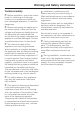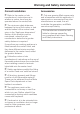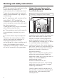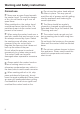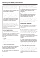 Warning and Safety instructions Correct installation Accessories ~ Refer to the cooker or hob manufacturer's instructions as to whether a cooker hood may be operated above the cooker/hob. ~ Only use genuine Miele spare parts ~ The minimum safety distances between the top of the cooker or hob and the bottom of the cooker hood given in the "Appliance dimensions" section of this booklet must be maintained, unless the hob manufacturer states that a greater safety distance is required.