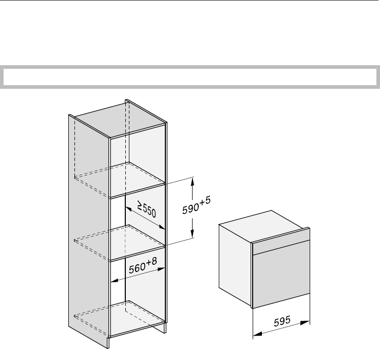 Il ne doit pas y avoir de paroi arrière dans la niche d'encastrement.