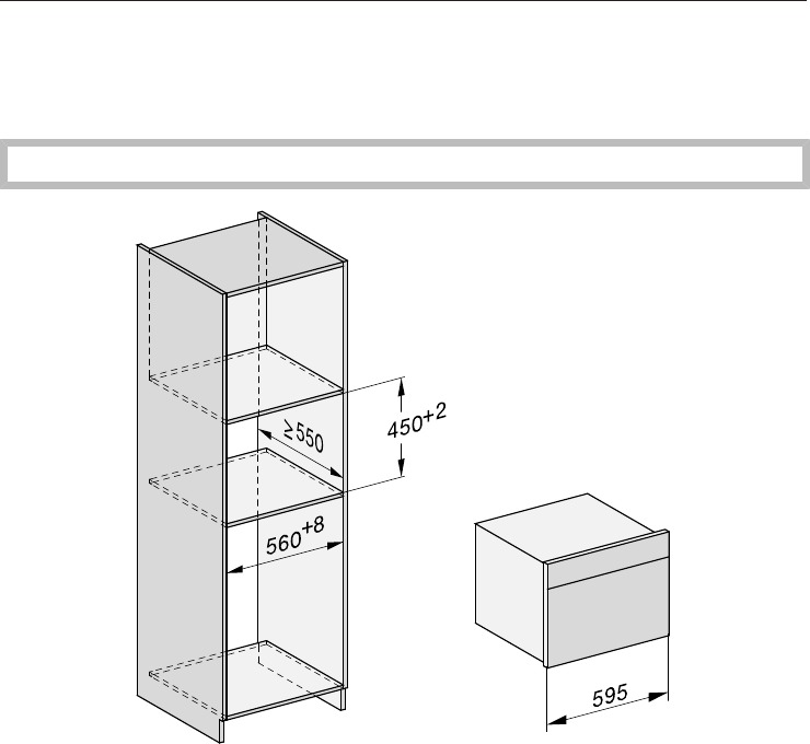 Hinter der Einbaunische darf keine Schrankrückwand vorhanden sein.