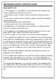 IMPORTANT SAFETY INSTRUCTIONS Appropriate use This appliance is intended for use in domestic households and similar residential environments such as – staff kitchen areas in shops, offices and other working environments – farm houses and by clients in hotels, motels and other residential type environments – bed and breakfast type environments – catering and similar non-retail applications. This appliance is not intended for use outdoors, in damp environments or in places exposed to rain.
