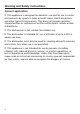Warning and Safety instructions Transport Damage to the dishwasher can compromise your safety. Before using the dishwasher, check it for any visible transport damage. Never use a damaged dishwasher. Only transport the dishwasher in an upright position so that no water flows into the electrical controls, as this would cause faults. If you wish to transport the dishwasher, empty it and securely fasten all loose parts such as baskets, hoses, and cables.