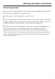 Warning and Safety instructions ~ Tampering with electrical connections or components and mechanical parts is highly dangerous to the user and can cause operational faults. Never open the casing of the appliance. ~ While the appliance is under guarantee, repairs should only be undertaken by a Miele authorised service technician. Otherwise the guarantee is invalidated. ~ Miele can only guarantee the safety of the appliance when genuine original Miele replacement parts are used.