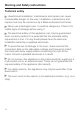 Warning and Safety instructions ~ Some types of food dry out quickly and can self-ignite if high grill temperatures are used. Never use the grill to finish baking partcooked rolls or bread or to dry flowers or herbs. Use Fan plus U or Conventional heat V for this type of procedure. ~ If using alcohol in your recipes, please be aware that high temperatures can cause the alcohol to vaporise. The vapour can catch fire on hot heating elements.