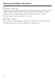 Warning and Safety instructions ~ Some types of food dry out quickly and can self-ignite if high grill temperatures are used. Never use the grill to finish baking part-cooked rolls or bread or to dry flowers or herbs. Use Fan plus U or Conventional heat V for this type of procedure. ~ If using alcohol in your recipes, please be aware that high temperatures can cause the alcohol to vaporise. The vapour can catch fire on hot heating elements.