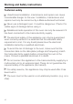 Warning and Safety instructions ~ Tampering with electrical connections or components and mechanical parts is highly dangerous to the user and can cause operational faults. Never open the casing of the appliance. ~ While the appliance is under guarantee, repairs should only be undertaken by a Miele authorised service technician. Otherwise the guarantee is invalidated. ~ Miele can only guarantee the safety of the appliance when genuine original Miele replacement parts are used.