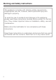 Warning and Safety instructions This appliance complies with statutory safety requirements. Inappropriate use can, however, lead to personal injury and damage to property. To avoid the risk of accidents and damage to the appliance, please read these instructions carefully before using it for the first time. They contain important notes on installation, safety, use and maintenance. Miele cannot be held liable for non-compliance with these instructions.