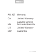 Garantie Limitée Canada Les conditions de la garantie suivante sont valides au Canada seulement. Miele Limitée, (ci-après nommée "Miele") garantit à l’acheteur original que ce produit, y compris tous ses accessoires et pièces autorisés par Miele, est libre de tout défaut de matériel et de fabrication. 1.