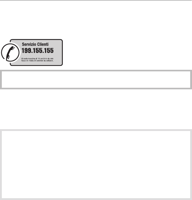 Il numero di telefono del servizio di assistenza tecnica è indicato in fondo al
