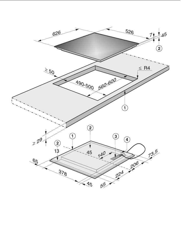 Die Netzanschlussleitung (L = 1440 mm) liegt lose bei.