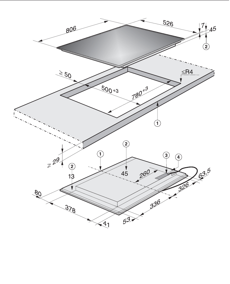 Die Netzanschlussleitung (L = 1440 mm) liegt lose bei.