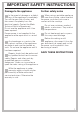 IMPORTANT SAFETY INSTRUCTIONS Installation and connection When using your gas appliance follow basic safety precautions including the following: Read all instructions before using for the first time. Be certain your appliance is properly installed and grounded by a qualified technician. To guarantee the electrical safety of this appliance, continuity must exist between the appliance and an effective grounding system. It is imperative that this basic safety requirement be met.