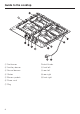 Guide to the cooktop a Fast burner Control Knobs b Auxiliary burner h front left c Normal burners i rear left d Grates j rear right e Burner symbols k front right f Power cord g Plug 8